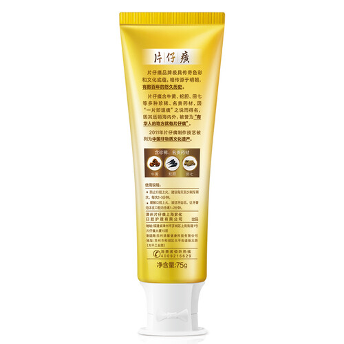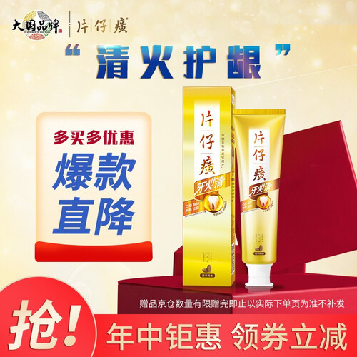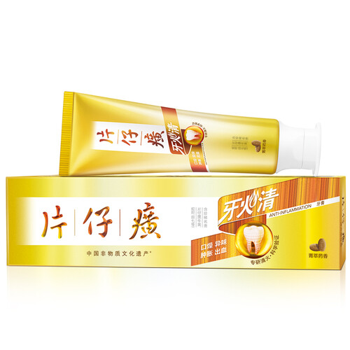 片仔癀含牛黄、蛇胆、田七等药材。其牙膏含有片仔癀活性成分,能缓解口腔溃疡、牙龈肿痛、口腔异味等口腔上火问题。