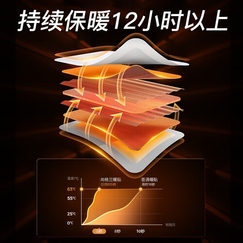 尚格兰暖宝贴选取高纯度优质铁粉,铁粉细腻,升温更快,持续发热时间久。选用四层无纺布料,透气性好,发热更均匀。