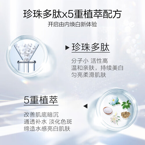 采用美白配方,内含珍珠多肽成分,可以让肌肤保持匀亮。添加多重植物精粹,能够深度滋润肌肤,为面部增添通透感。