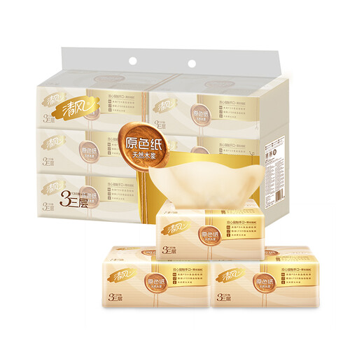 清风 可降解纯木浆原色抽纸