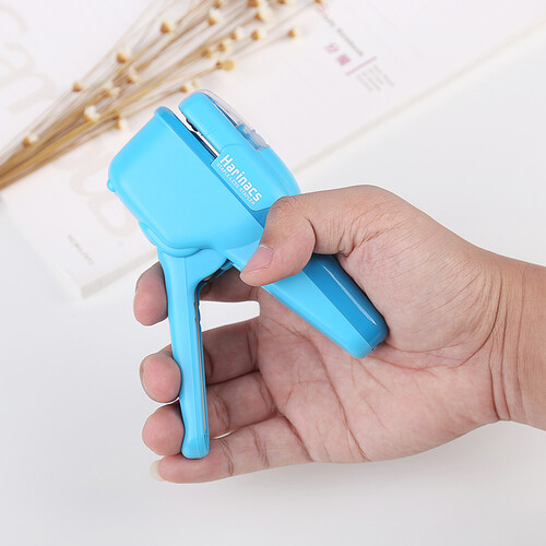 无针装订,减少了耗材率,使用更环保安全。搭配加长手柄的设计,操作更加省力便捷。上盖可开启,方便日常清洁,更加卫生。