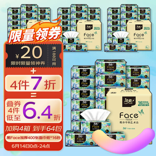 洁柔 黑Face可湿水抽面巾纸