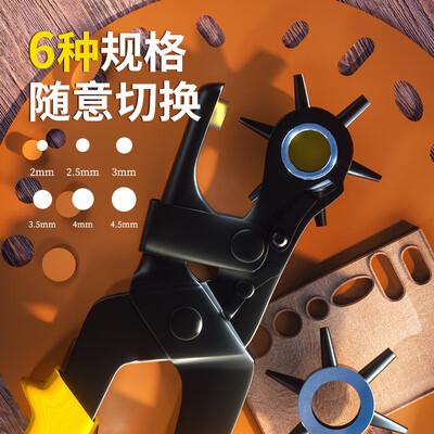 钳头采用硌钒钢锻造,整体经热处理更耐用,六种规格选择让切割快速利落,广泛适用于皮革和布料等材质,满足你的打孔需求。