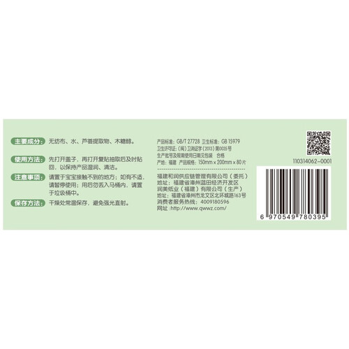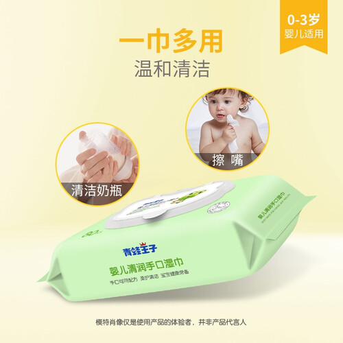 清洁宝宝口手设计,妈妈放心使用。亲肤安全湿巾设计,触感柔软,轻松擦试污渍,特别适合用于宝宝口腔及牙床的清洁。