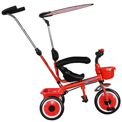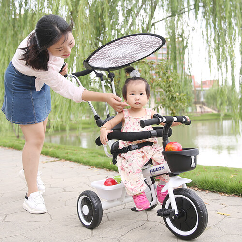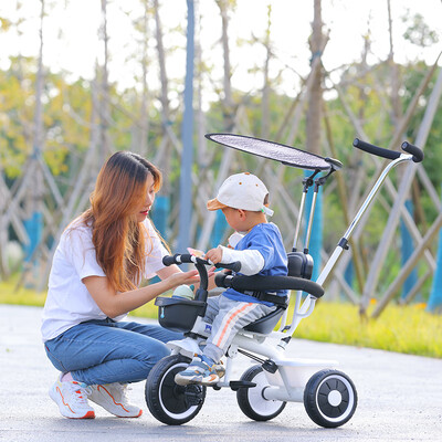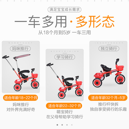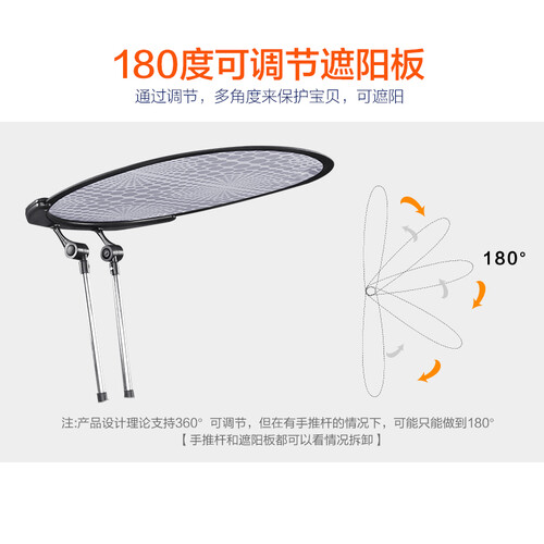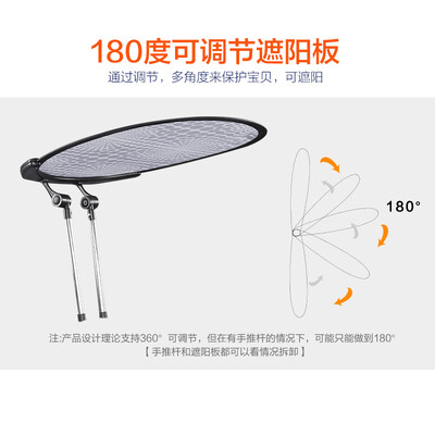 高碳钢车架坚固耐用,手推杆可自由伸缩,遮阳板角度可以调节,脚踏板加宽加大,防滑耐磨,轻便易携。