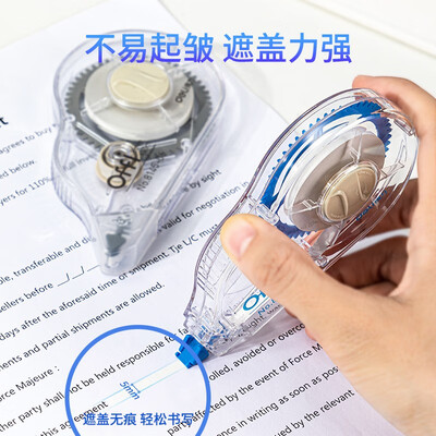 采用透明外壳,内部结构一目了然,随时监控带芯使用剩余情况,修正不易起皱,不易起带,便于再次书写。