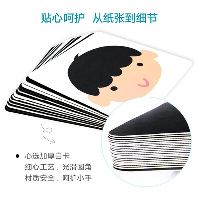 简单的黑白卡片,有助于提升宝宝早期视觉感知,增强颜色感知能力和敏感度。并加入了一些细节,锻炼宝宝注意力和对形状辨别的能力。