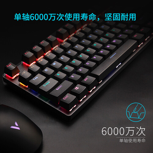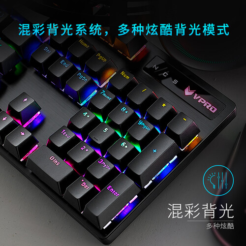 机身表面采用金属拉丝上盖,配以氧化工艺,更加彰显质感;采用双色注塑悬浮背光键帽,不褪色不磨损,透光均匀不刺眼。