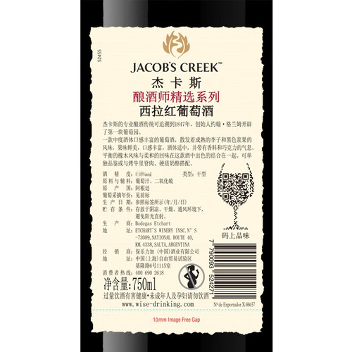 杰卡斯 西拉珍藏干红葡萄酒