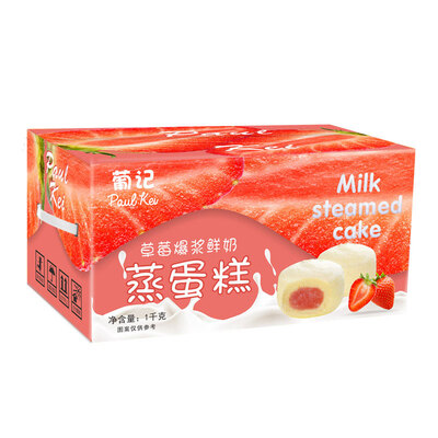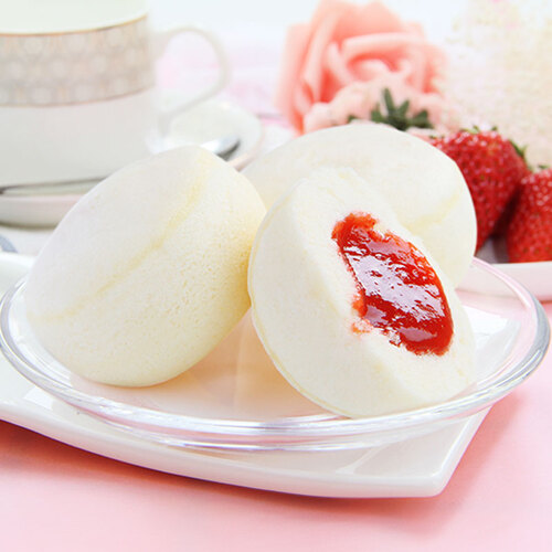 采用严谨的蒸工艺制作,口感软绵细腻。外形圆润饱满,内里添加了可口草莓酱,红润清甜,弹润爽滑。