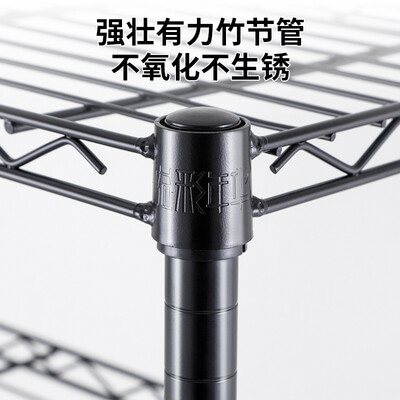 使用碳钢材料制成,耐损耐磨,久用不生锈,细密蜂巢网片式隔层,透气沥水。竹节管可自由调节层高,储物更灵活。
