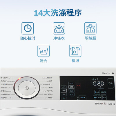90度高温筒自洁,防止衣物二次污染。10KG大容量设计,满足全家洗衣需要。洗衣、烘干一次完成,使用更加方便。