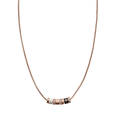 多串珠项链,每颗串珠上都标有品牌logo,品牌辨识度高彰显档次。细腻的玫瑰金项链,环环相连,结实抗拉扯。