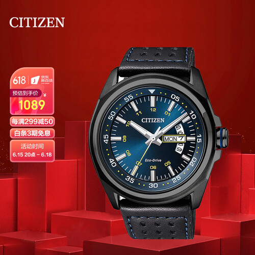西铁城 深海蓝盘带夜光手表