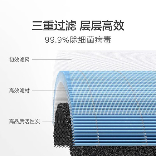 高效空气增压系统,性能更高,适用面积更大,快速净化空气,守护家人呼吸健康。三层过滤,层层过滤空气杂质,高效除菌除病毒。