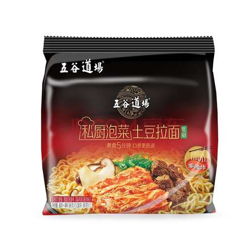 将爽辣的泡菜和非油炸蒸工艺面饼搭配在一起,不含油包,营养又美味,吃起来酸辣劲爽。