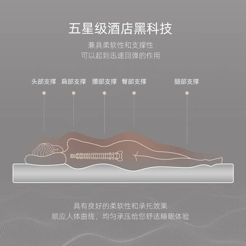 加厚六厘米设计,包裹感舒适,蓬松高弹,持久定型。兼具柔软性和支撑性,顺应人体曲线,均匀承托身体各部位重量。