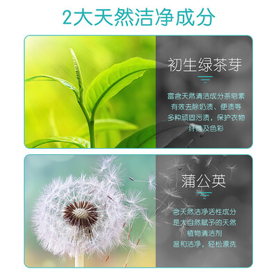 富含茶皂素等植物成分,洗掉有害质,去渍更柔净;无磷低泡配方,洗衣更护手;适用于清洗宝宝衣物等,满足机洗、手洗两大需求。