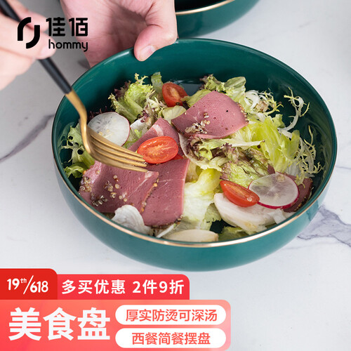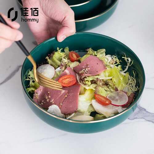 佳佰 金边孔雀绿陶瓷碗
