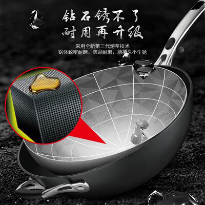 铸铁打造,坚固耐磨,采用熔萃技术,不易生锈,厚底薄壁锅身,热量均匀,轻松享受爆炒的匀质口感。