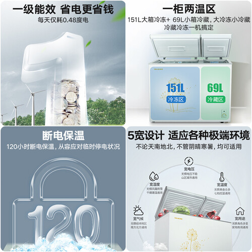 省电节能丨一年到头开着冰柜,电费也是一笔不小的开支。而此款冰柜符合一级能效标准,平均每天消耗0.48度电,为你节省不少钱。更有独立的冷藏冷冻室,避免串味。