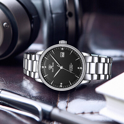 不锈钢的双按弹弓扣,不仅可以让手表更加的贴合手腕,而且它50米的生活防水功能,即使游泳也不用取下来,十分的方便。