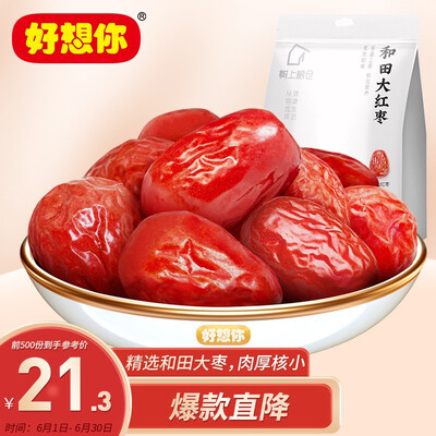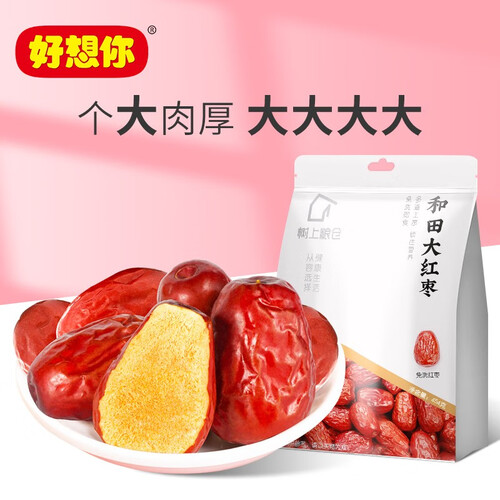 严选大而饱满的一级骏枣原料,制成的红枣皮薄肉厚,枣核很小,肉质紧实有弹性;可以用来煮银耳或煲汤,久煮也不会烂。