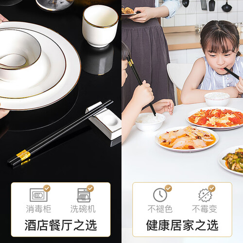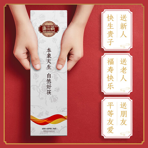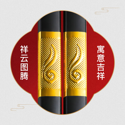 采用金色的祥云图腾的筷端设计,外观精美别致,点缀装饰了筷身。筷身一体成型,易于清洗,使用起来卫生洁净。