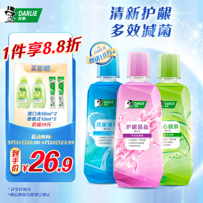 有三种口味的漱口水可多重呵护口腔,口气自然清新,漱口水能渗入牙刷难以清洁的口腔部位,让口气保持清新。