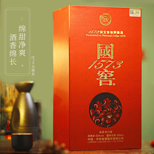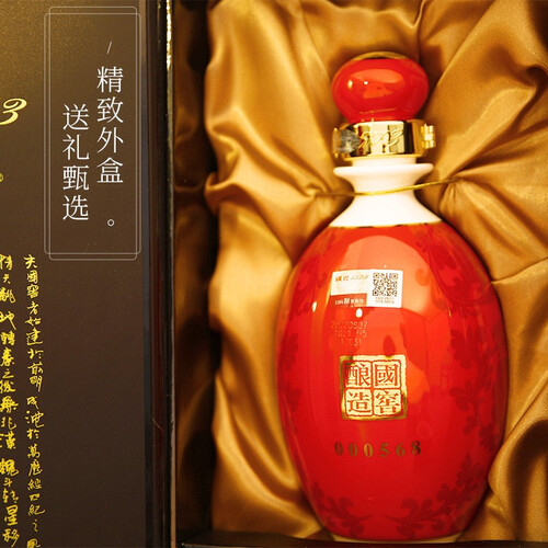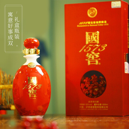 红色的瓶身,以金色勾勒文字,衬托出喜庆的愉悦氛围。选用优质的高粱和小麦,历经繁琐且严谨的酿制,呈现出经典的浓香型白酒。