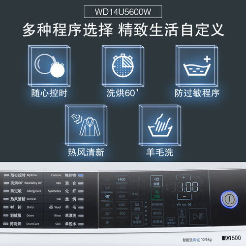 洗烘一体的设计,衣物即洗即干,不用再看天气洗衣。具有两种烘干模式,可根需选择,满足你不同的需求。