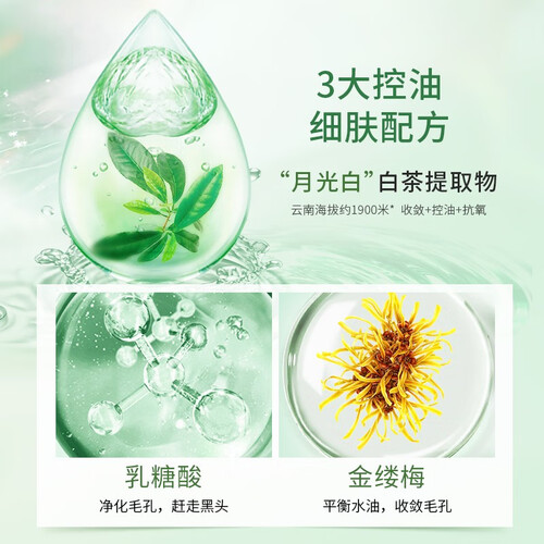 萃取高山白茶提取物,成分更纯净,有效收缩毛孔,减少油光产生,维持水分与脂质平衡,令肌肤清新舒爽,提升肌肤自身机能。
