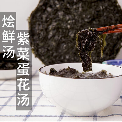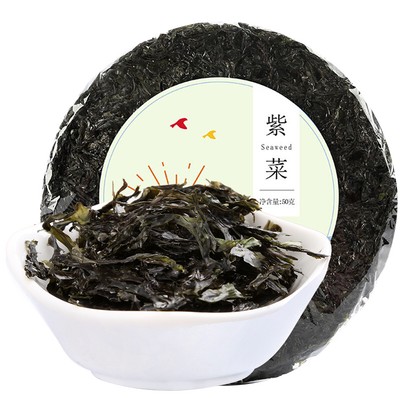 从大海打捞出的紫菜直接晾干,没有额外的水洗加工步骤,确保每一份紫菜都十分新鲜,色泽暗绿油亮,品质好口感佳。