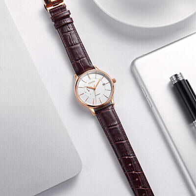 大三针采用剑型设计,加上条形字钉,能够展现出强大的气场。IP镀玫瑰金色表壳,光泽感强,长期佩戴不易生锈。