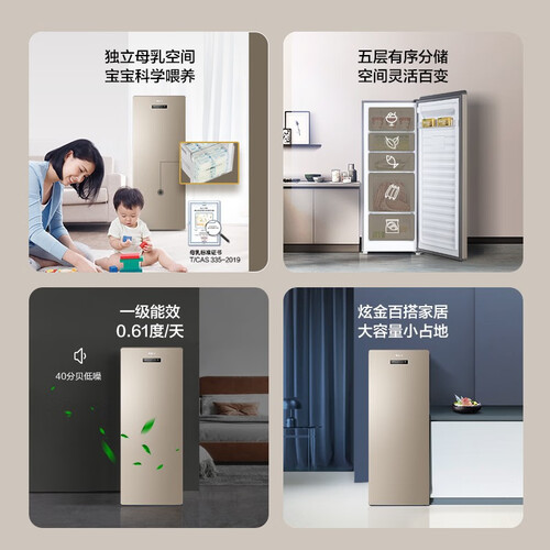 特别安装独立母乳空间,留住母乳营养,实现科学喂养。设计五层分储,食材分门别类进行存储,可以灵活进行调整。