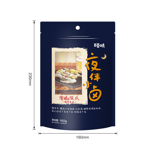 精选肉质肥美鸡爪,独特制作工艺搭配黄色小米辣泡制,层层入味,酸辣好口感,让你吃的更过瘾。