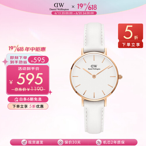 丹尼尔惠灵顿白色皮质表带手表