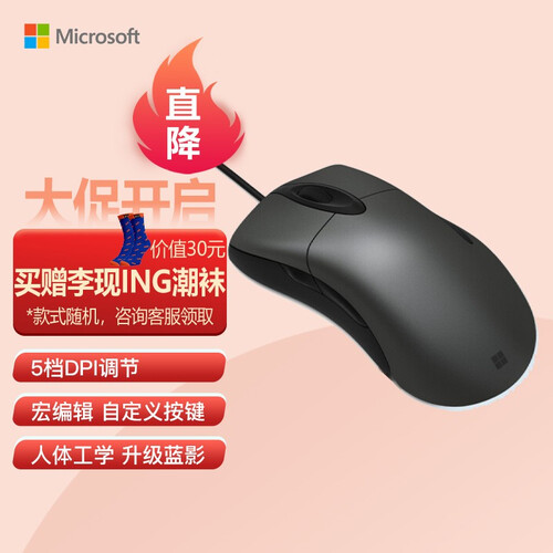 鼠标造型饱满,舒适贴合;5档DPI可调节,3个自定义按键,并搭载蓝影追踪技术,可胜任不同的桌面。