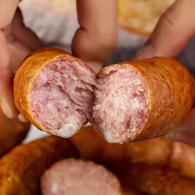 味道香气扑鼻的香肠,它的选材非常考究,加之各种香料烹制以后,呈现出的就是这么美味可口的香肠了。