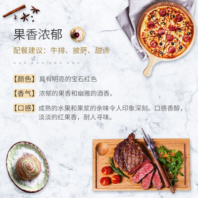 单宁柔顺,层次分明,入口会更加地圆润,酒质柔和不刺激肠胃。手工采摘和分拣,只选颗粒饱满葡萄,让酒味更醇香。