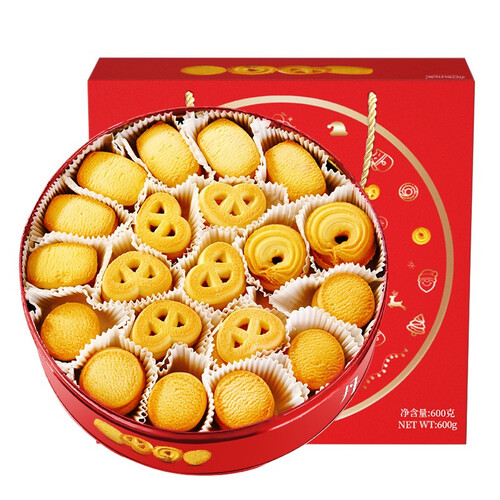 奶香曲奇饼干,香味扑鼻而来,味觉与嗅觉的双重享受。精美红色礼盒,新年喜气洋洋,让你快乐迎接美好新年。