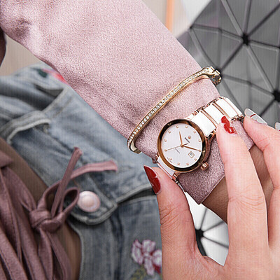 采用镶钻设计,释放出璀璨光芒,绽放迷人光彩,颜值出彩。搭配陶瓷表带,质地坚硬,质感出色。
