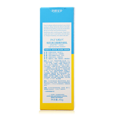 50倍防晒科技新升级,3重防黑抗晒黑,防御UVB12.5小时以上。物理和化学双重防晒,轻薄更透气,既防晒又有美白的效果。