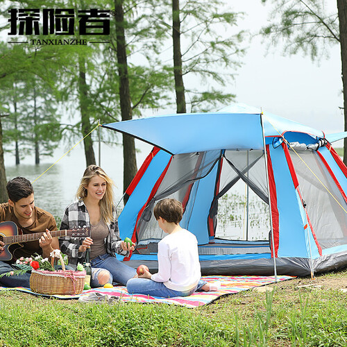 一顶帐篷多种用途,适合野外聚餐野营使用,更加的方便灵活,精致的帐脚设计,有效固定帐篷的死角,防止遇风刮落。