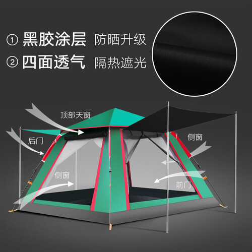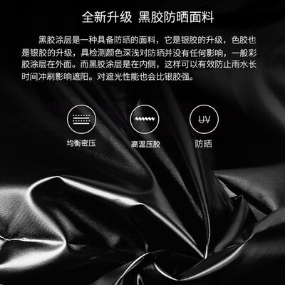 选用加厚黑胶涂层面料,遮阳防晒,尽享清凉一夏。四面网纱设计,阻隔闷热感,提高舒适度。