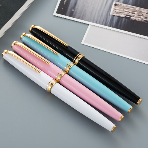 可脱卸式吸墨器清晰简单,可以更换墨囊,纷纷的颜色清新甜美,很有少女感,金边镶嵌显得时尚大气。