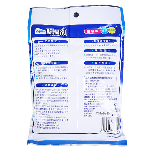 小小一袋吸湿量大,开封可使用1至4个月,长效守护你的衣柜,避免滋生霉菌损坏衣物。采用日本技术密封,避免渗漏污染衣物。