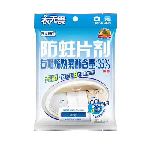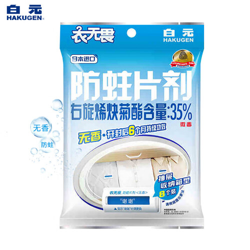 无香设计,可趋避蛀虫,婴儿的衣物和各种珍贵材质的衣物也能安心使用。使用时间长达6个月,长效保护你的衣物鞋包。