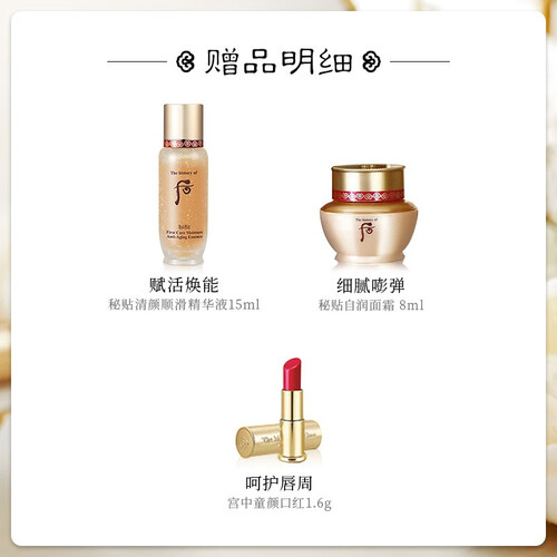 蕴含清新精粹、拱辰精粹、琼玉精粹和莲花提取物,有效增加肌肤弹力,保湿润泽肌肤。精美礼盒装设计,送人自用两相宜。