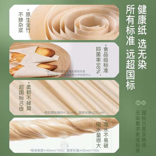 优质原料|天然竹纤维制成的纸巾不但柔软舒适,而且健康安全,无漂白和有害添加物的现代工艺保证了面巾纸的天然品质,甚至还能够起到抑菌的作用。